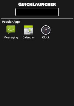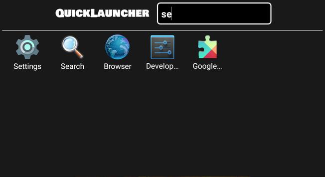 Quick Launcher lets you launch apps by just typing in the name of the app. Instead of flipping through your home screens trying to remember where you put your app, you can start Quick Launcher, type the name of the app you want to open, and select the app from the list of apps that match your app name. It is that quick and easy!