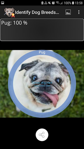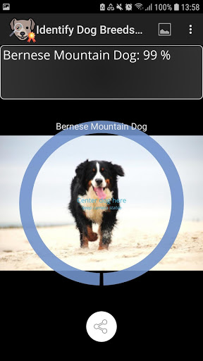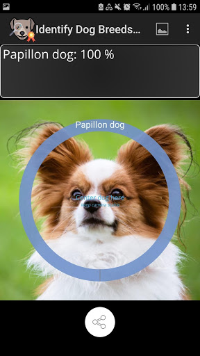 Click the camera button or load an image from the gallery to analyze a single picture. Activate continuous predictions and keep the dog in the circle to get predictions directly from the video stream. The app works best for high quality images loaded from the gallery.