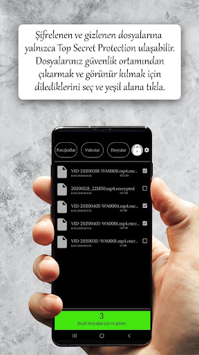 * Görünmesini istemediğiniz tüm dosya, fotoğraf ve videoların gizlenmesini sağlayabilirsiniz ve yalnızca Top Secret Protection ile siz görebilirsiniz.