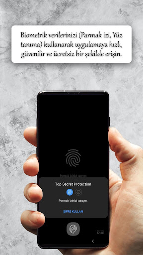 * Şifreniz yalnızca cihaz içerisinde saklanır. Eğer cihazınızda parmak izi ya da yüz tanıma doğrulaması açık değilse şifre ile giriş yaparsınız. Şifrenizi hatalı girmeniz durumda şifreniz ile ilgili ipucunu Top Secret Protection size verecektir.