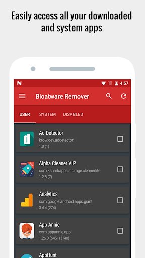 En uygun, en hızlı, en çok yönlü ve en kolay Kaldır ve Bloatware Remover aracını kullanın. Android telefonunuzdaki Bloat'ı hiçbir zaman temizler. Bloatwass'ı çıkarmak hiç bu kadar kolay olmamıştı. Bloatware'i devre dışı bırakmanız gereken tek Bloatware Remover aracıdır.