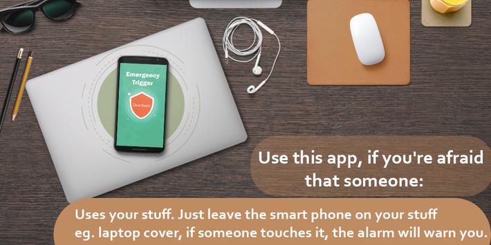 The app can be used when you have placed your mobile in charging in some public places. You can safe guard you valuable documents, laptops or wallet by activating the app and place your phone inside the wallet or placing over documents. The alarm will start ringing inside any wallet if anyone picks up your wallet.