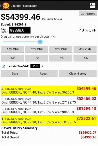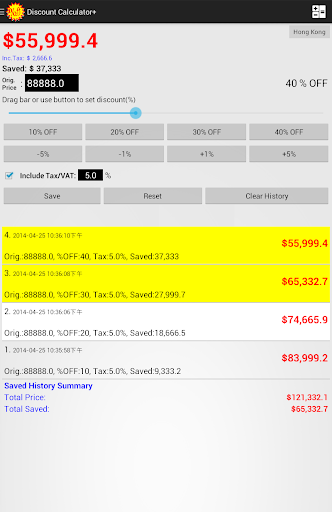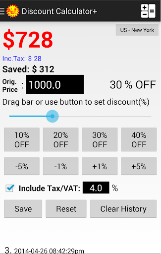 Discount Calculator help you to calculate the final price after discount and know how much you can save immediately. VAT/Tax could also be included in the calculation.
