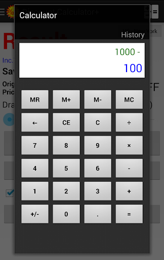 Calculation panel to input original price.