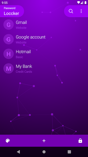 Loccker, şifrelerinizi, kredi kartı bilgilerini, e-bankacılık kimlik bilgilerini, web hesaplarını ve diğer özel verileri cihazda tamamen çevrimdışı olarak güvenli bir şekilde saklamak / kilitlemek için bir şifre yöneticisi uygulamasıdır. Bu şifre yöneticisi güvenli ve kullanışlı bir deneyim için güzelce tasarlanmıştır. Bazı özellikler aşağıda listelenmiştir.