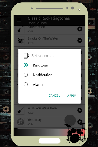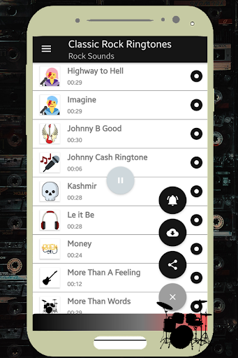 💀With your app Classic Rock Ringtones Rock music for cell phone free, you have tools that allow you to select your classic rock song and use it as:
