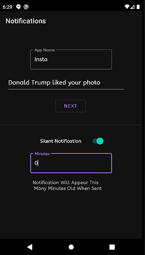 Easily create fake notifications for a variety of apps. Great for showing off to friends in person or in screenshots or even to get out of unwanted situations. App is completely free to use, no in app purchases, access all features.