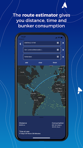 Hızlı bir rota tahmini yapın ve mesafe, zaman ve bunker tüketimini bulun. Herhangi bir geminin gerçek zamanlı konumundan herhangi bir bağlantı noktasına veya bağlantı noktalarının arasında rota edebilirsiniz.