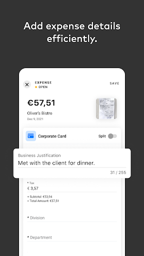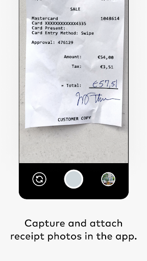 - Add receipts captured with your phone's camera eliminating the need to keep track of paper receipts
