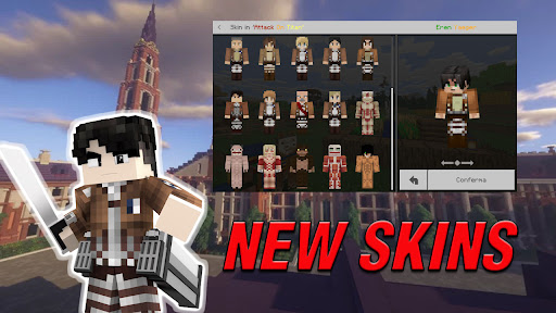 Install your favorite attack on titan skin style and customizable skins with fun in Minecraft PE (MCPE) creative mode theme.