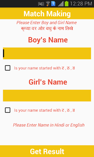 Enter the name of Boy and Girl either in Hindi or in English. After that press the button Match Making.