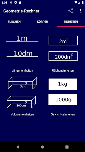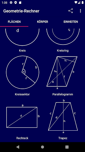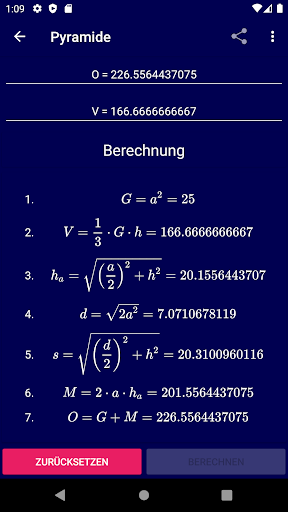 Uygulama, verilen değerlere dayanarak geometrik figürleri (yüzeyler, gövde, birimler) hesaplar ve ayrıca çözeltinin resmi bilgi işlem yolunu da gösterir!