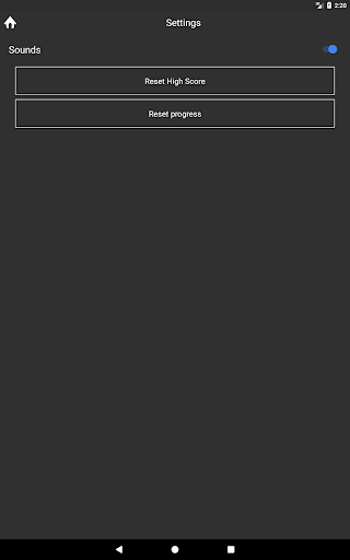 E. Ayarlar: Ses açma / kapalıyken, yüksek puanlar ve ilerlemeyi sıfırlayın.