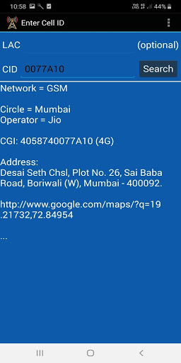 Belirli bir kule hücre kimliğinin adresini, enlem ve boylamını görüntüler.