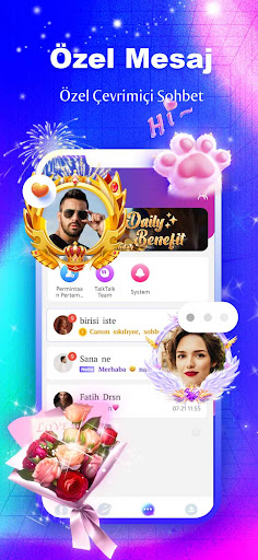TalkTalk'ta, sevdiğiniz kişiyle tanıştığınızda zihninizi ve kişiliğinizi tam olarak ifade edebilmeniz ve ayrıca başkalarının önünde servetinizi gösterebilmeniz için muhteşem hediye efektleri olduğunu göreceksiniz. Sistem görevlerini tamamlayabilir ve her gün ücretsiz oyun jetonları alabilirsiniz, böylece her gün en sevdiğiniz kişilere ücretsiz hediye gönderme fırsatınız olur.