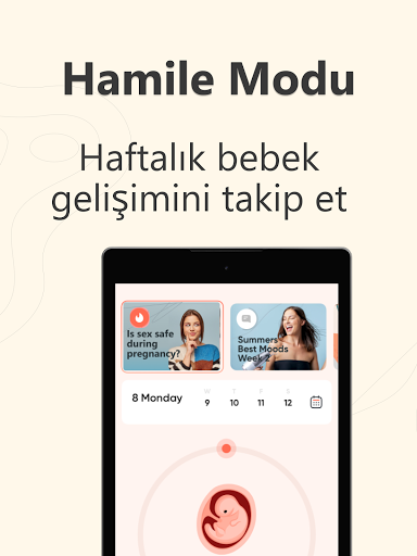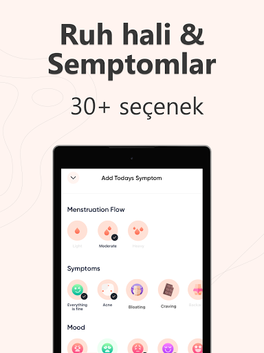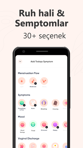 Sağlığınız hakkındaki tüm bilgilere erişin: Adetinizin ilk günü, adet döngünüzün uzunluğu, düzensiz dönemler, ruh halleri ve duygular, yumurtlama günleri, PMS semptomları, doğum kontrol takibi, doğacak bebeğinizin gelişimi, yakınlıklaşmalar, servikal akıntılar... Semptomlarınızı günlük olarak girin ve sizin için kişiselleştirilmiş özel içeriklerden yararlanın! Hamilelikten cilt bakımına, ilişkilerden egzersiz ipuçlarına kadar merak ettiklerinizi öğrenin, sayısız ve benzersiz içeriklerle vücudunuzu daha iyi tanıyın...