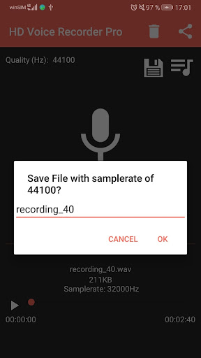 Yüksek çözünürlüklü ses çoklu örnekleme arasında seçimi -Kayıtınızı Duraklatın ve Devam Etme