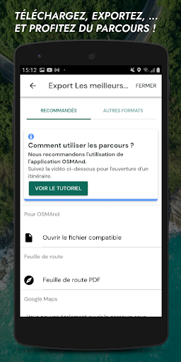 Nous vous recommandons l'utilisation de l'application GPS OSMAnd qui permet l'ouverture de fichiers GPX, entièrement compatible avec nos roadbooks.