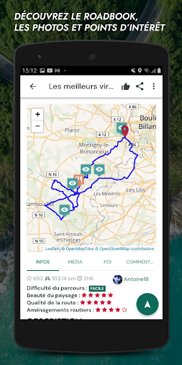 Les balades moto sont agrémentées de tout ce dont vous aurez besoin : photo, points d'intérêt mais également commentaire entre membres.