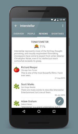 Movie Mate size filmlere, derecelendirmelerine, eleştirilere, seanslara ve Tratk.tv, TMDb, Rotten Tomatoes, IMDB ve Metacritic kaynaklarının sunduğu birçok özelliğe ulaşmanızı sağlar.