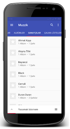 Muzzik uygulaması sanatçı biyografilerini ve resimlerini otomatik olarak telefonunuza indirir.