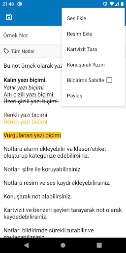 • Notları Bildirimde sürekli tutarak hiç unutmayın.
