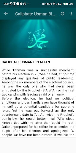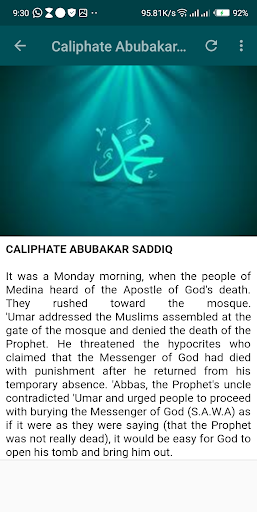 Story of Prophet Muhammad SAW and his Caliphate this app it work offline it comprises the full story of the prophet muhammad PBUH and his caliphate which comprises Abubakar sadiq, umar bin kaddaf,and Aliyu bin Abi Dalib .