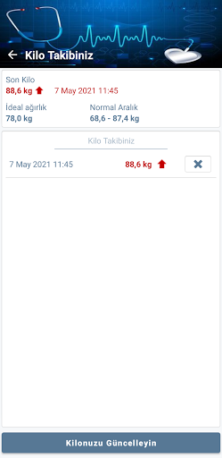 - Vücut Yağ Oranı, Vücut Kitle İndeksi, Günlük Kalori İhtiyacı, Günlük Su İhtiyacı ve daha fazlası gibi kilo ve ilgili parametreleri takip etme...