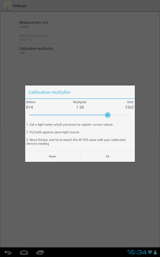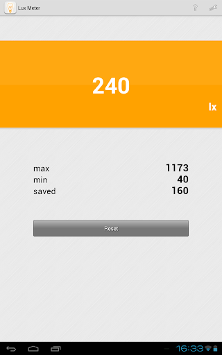 Be aware that the accuracy of the light sensor vary between different devices and values shown in this application are indicative.
