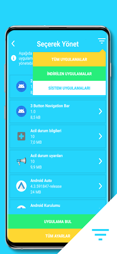 • İndirilen ve sistem uygulamalarını filtrele