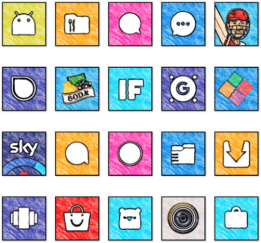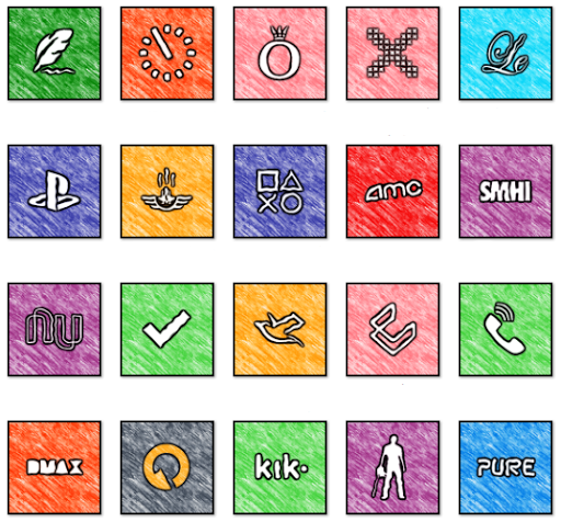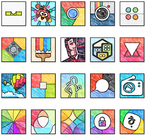 Bu inanılmaz el çizim simgelerinin tadını çıkarın, boya kalemi ve skeç tarzının boyamasını simüle eder.