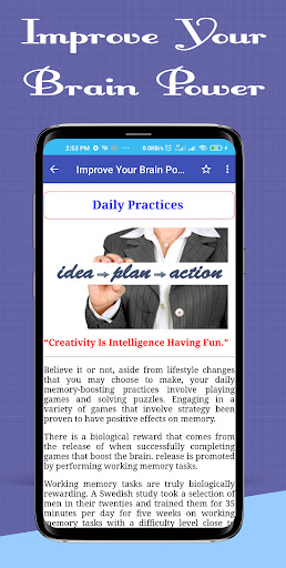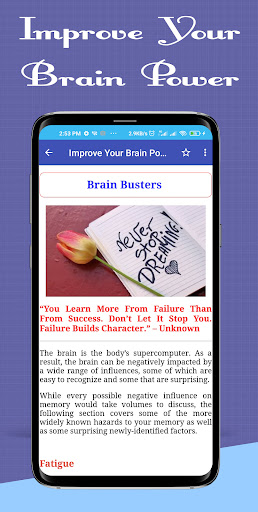 Ancak, hafızanızı geliştirin veya beyin belleği uygulamanızı artırın gerçek bir beyin güçlendirici uygulaması.belirli bir zamanda uygulama & amp;Zihniyetinizdeki tüm zorlukları kaldırın ve olumlu düşünceyi düşünün.