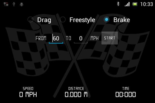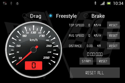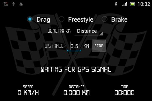 You can fully customize benchmark parameters of the drag and even use freestyle mode with a racing car style speedometer and stopwatch. Units (Metric/Imperial) and zero speed threshold can be changed under settings.