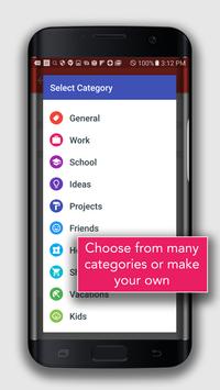 -Assign all of your notes a category to keep things where they belong. Choose from one of the existing Categories or create your own.
