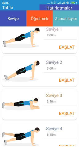 Bu uygulama, kilo vermenize, güçlenmenize ve daha güçlü merkez kaslarına sahip olmanıza yardımcı olacak farklı plank çeşitlemeleri sunar.