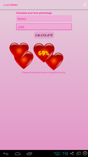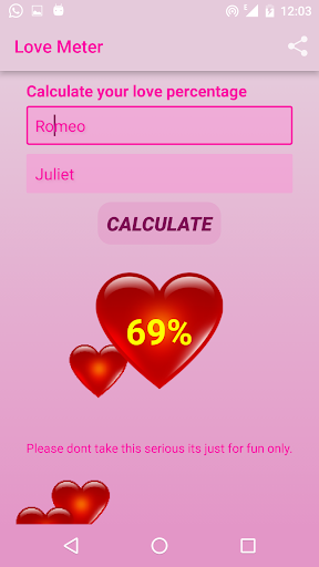 Adınızı ve eşiniz adını doldurun ve senin sevgin yüzdesini bulmak ve her ikiniz arasında olmuştur ne kadar sevgi görüyorum.