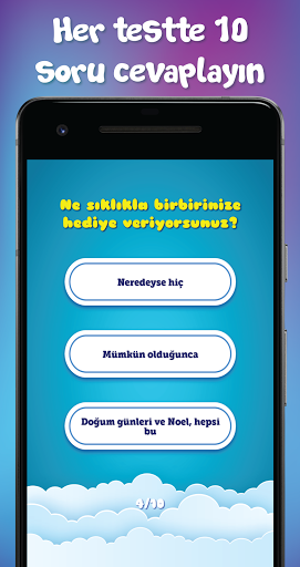 Şimdi sadece hızlı ve kolay bir sınav alarak arkadaşlarınız ve ailenizle arkadaşlığınızı test edebilirsiniz. Arkadaşlarınızla eğlenin, tüm test sonuçlarınızı kaydedin ve en iyi arkadaşınızın kim olduğunu görün. Sonuçları tüm arkadaşlarınızla paylaşabilirsiniz, böylece nasıl puan aldıklarını görebilirler ve uygulamayı denediklerinde sonuçlarını da sizinle paylaşabilecekler!