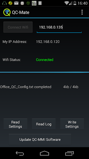 Transfer Q-Controller Database and Datalogging files between Q-Controller and Cellphone Update Q-Controller MMI Software through Android Cellphone