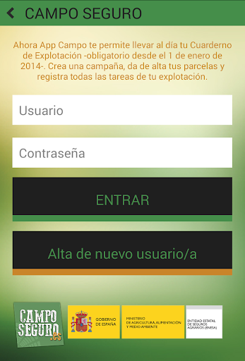 Seguros agrarios: elaborado con la colaboración de la Entidad Estatal de Seguros Agrarios (ENESA) del Ministerio de Agricultura, Alimentación y Medio Ambiente de España, el módulo Campo Seguro permite gestionar tus seguros agrarios, comunicar un siniestro o encontrar el mejor seguro para tu explotación.