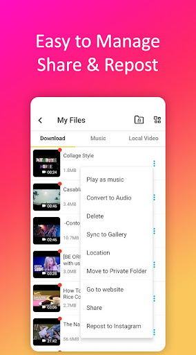 Snaptubè has an in-built video to audio converter capable of downloading songs at 256 kbps bitrate. While choosing the resolutions, Snaptubè asks for the video to mp3 conversion if you want. Download all your favorite songs from many social media apps to the phone memory and enjoy them offline at any time.
