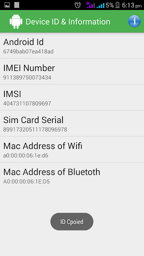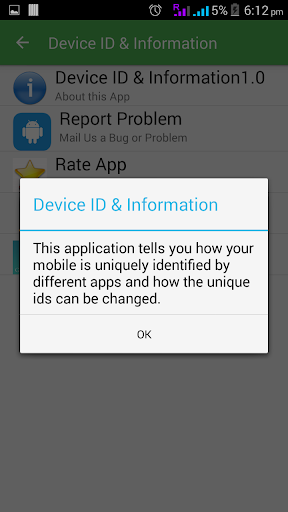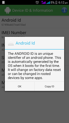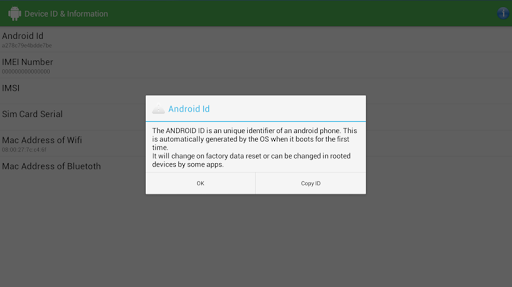Android ID & Information will gives you all the information that is used by most of the apps to uniquely identity your mobile.