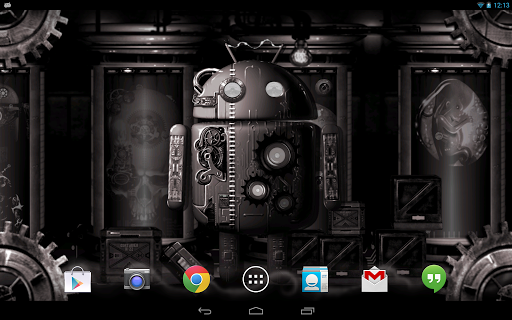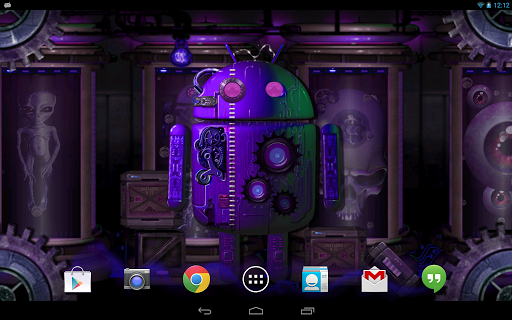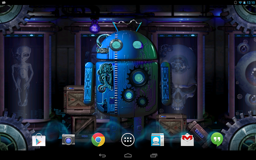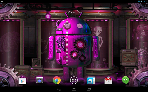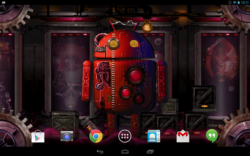 SteamPunk Droid Korku Döküm Alanı Sahibi Sunan Canlı Duvar Kağıdı - Bir Droid Lab Teknisyeni, Korkuklar ve Meraklarla dolu köpüren tanklara ev sahipliği yapıyor. Keşfetmek ve zevk almak için birçok detay. 7 renk teması, dönen dişliler, clockwork, paralaks kaydırma ve etkileşimli dokunmatik efektler ile. Dişliler parmağınızı hareket ettirir ve izler. Droid rastgele tuhaflıklar ve ifadelere sahiptir ve dokunmaya tepki verir.
