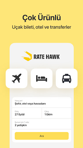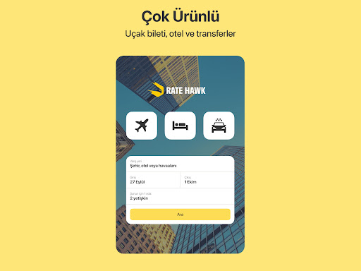 RateHawk, otel, uçak bileti rezervasyonu yapmak ve araç kiralamak ile diğer seyahat hizmetlerini ayarlamak için çevrimiçi bir platformdur. Seyahat profesyonelleri için 101 pazarda ve 14 dilde faaliyet göstermektedir.