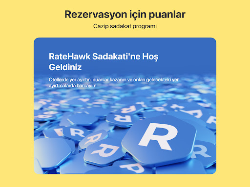 RateHawk’ta rezervasyon yapmanın çok büyük bir değeri vardır. Otel rezervasyonu yapın, puanları toplayın ve bunları kendi rezervasyonlarınızı ödemek veya müşterilere indirim sağlamak için kısmen veya tamamen kullanın. 1 sadakat puanı = 1 para birimi.