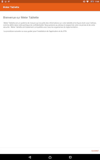 Meter Tablette demande l'autorisation expresse de l'utilisateur pour utiliser ces services. Cette autorisation est demandée dans le cadre de la participation à un panel de mesure d'audience, pour lequel les services d'accessibilité sont utilisés pour analyser l'usage des sites et des applications.