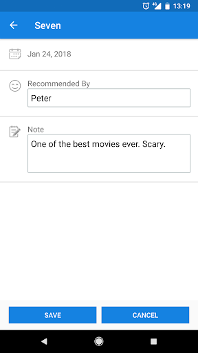 All of us gets recommendations for Restaurants, Books, Movies, Places to visit, or just about anything else. Some of us takes a note of it to remember when your are about to chose the next Movie to watch, or is going out for dinner on Friday. Of course the note can be saved anywhere; on a piece of paper, in an app for notes or in a draft on your email. But it is often not working just the way you want it to. So, Recommended is the app that is tailor-made for exactly this purpose!