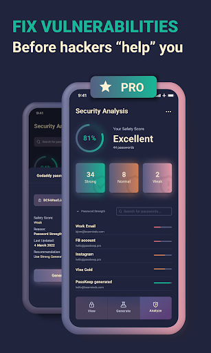 Together with the new design we added a few long requested and important features, the biggest of them are "Password Generator" and "Password Analysis".