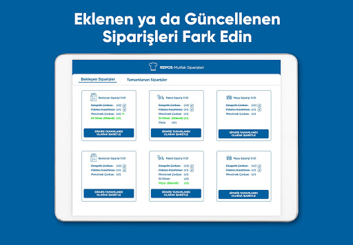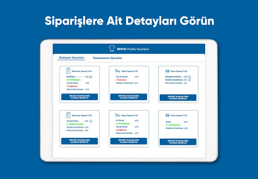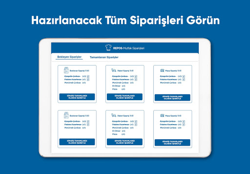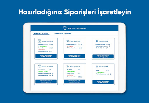 RePOS Mutfak kullanımı kolay ve hızlı bir adisyon fiş ve sipariş takip sistemidir. RePOS uygulamasını kullanan işletmeler için kullanılabilir. Uygulama, RePOS ve RePOS Garson uygulaması ile entegre bir şekilde çalışır. RePOS Uygulamasına aşağıdaki bağlantıdan erişilebilir.