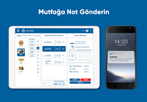 • Garsonlarınızın mobil cihazlar üzerinden hızlı ve hatasız şekilde siparişler almasını sağlar,
