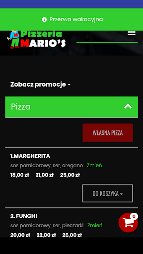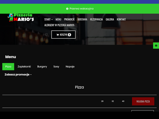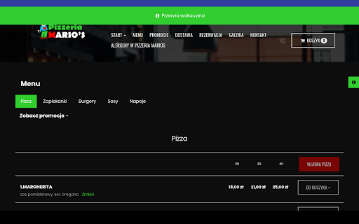 Aplikacja do zamawiania jedzenia z restauracji Pizzeria Marios w miejscowości Lędziny.
